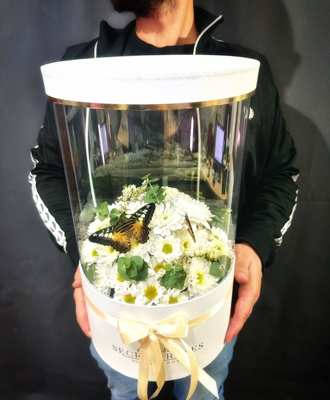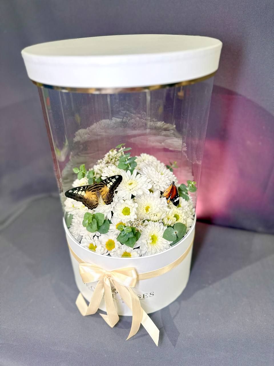 Композиция с хризантемой белой и 2 бабочки