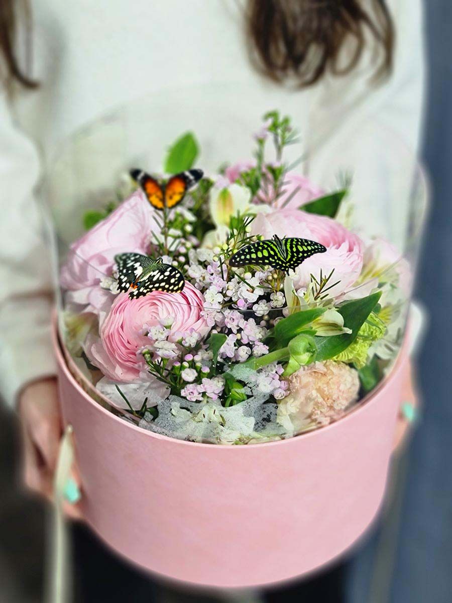 Мы не собираем букеты один в один как на фотографии, но сохраняем: наполнение, стилистику, цветовую гамму, размер выбранного вами букета.