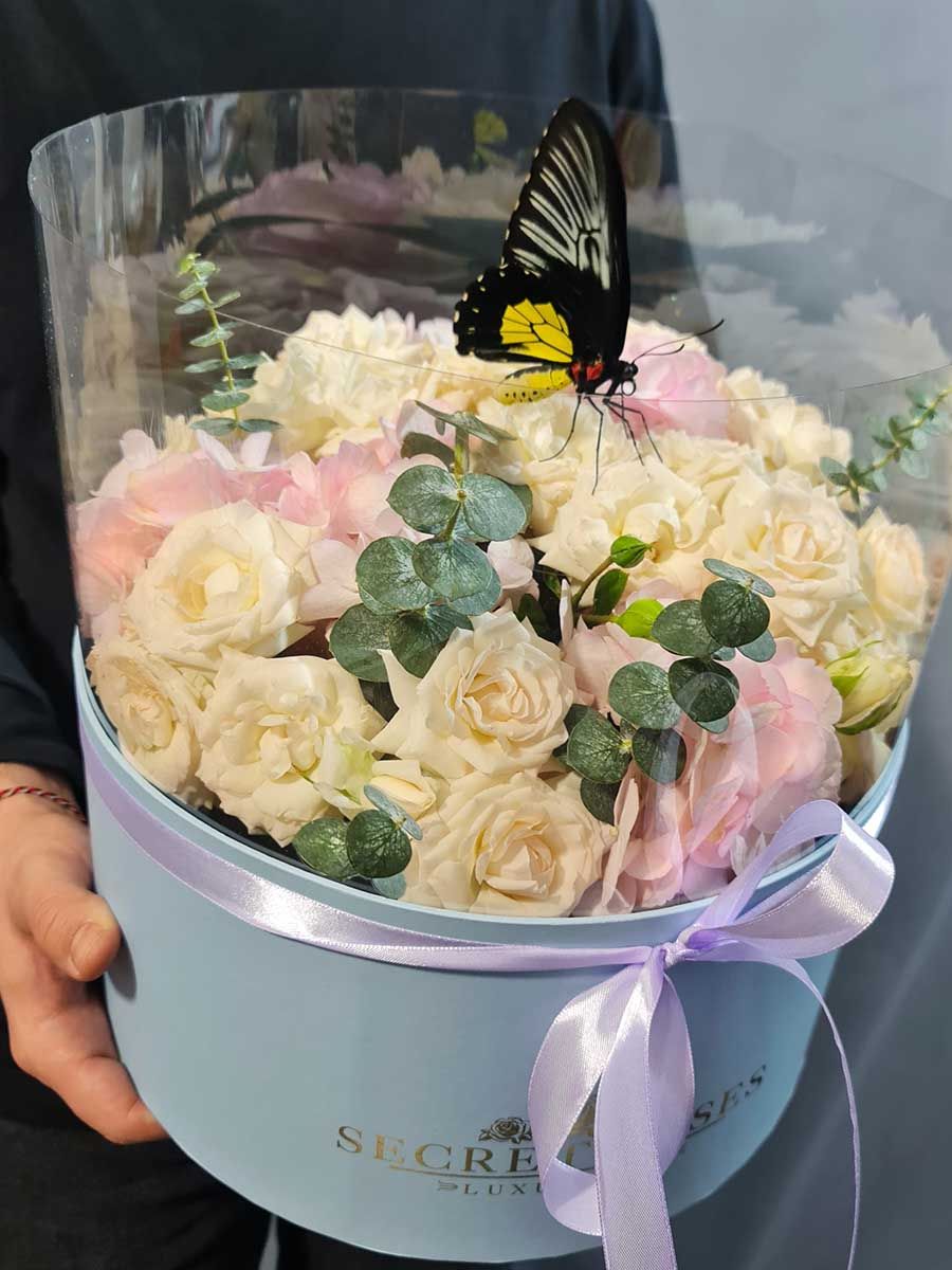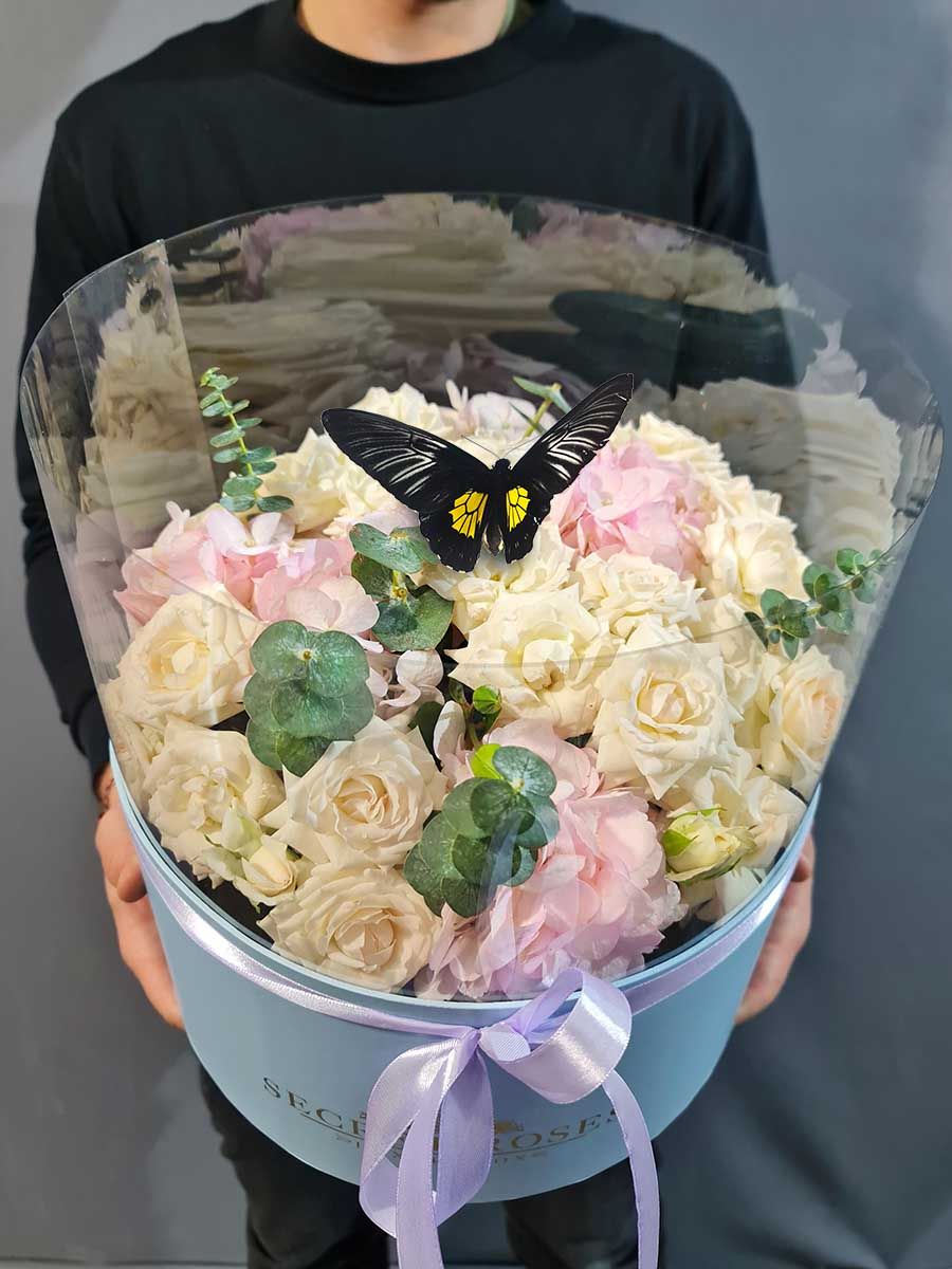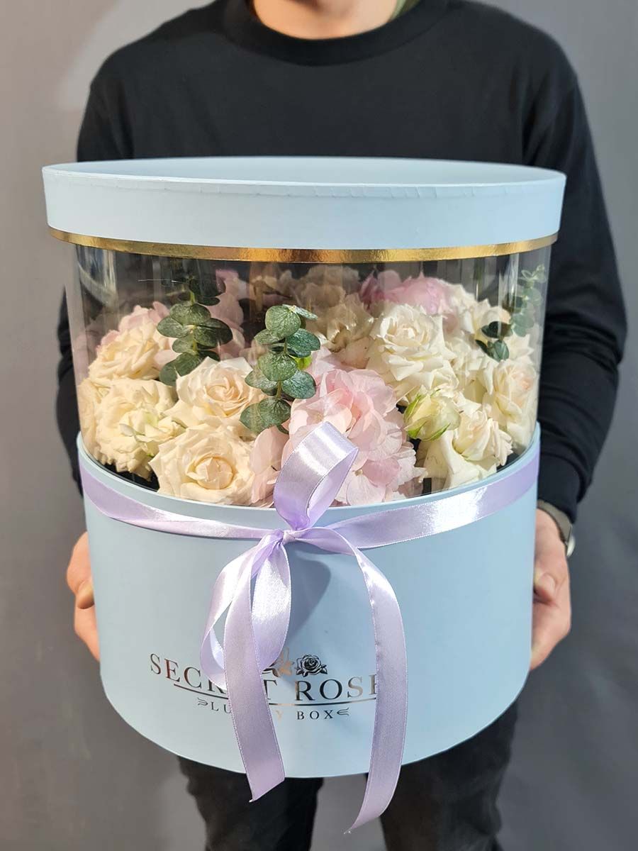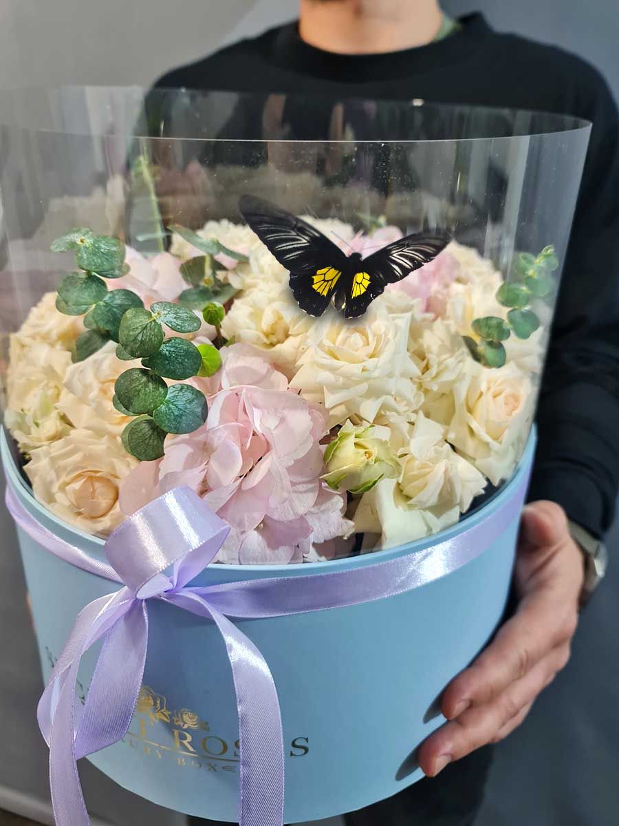 Состав: роза, гортензия, эвкалипт, авторская коробка