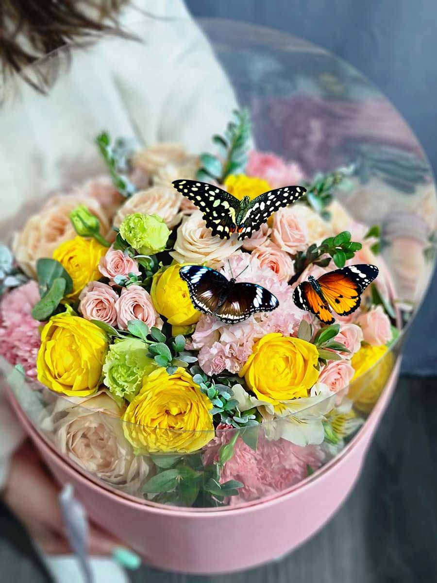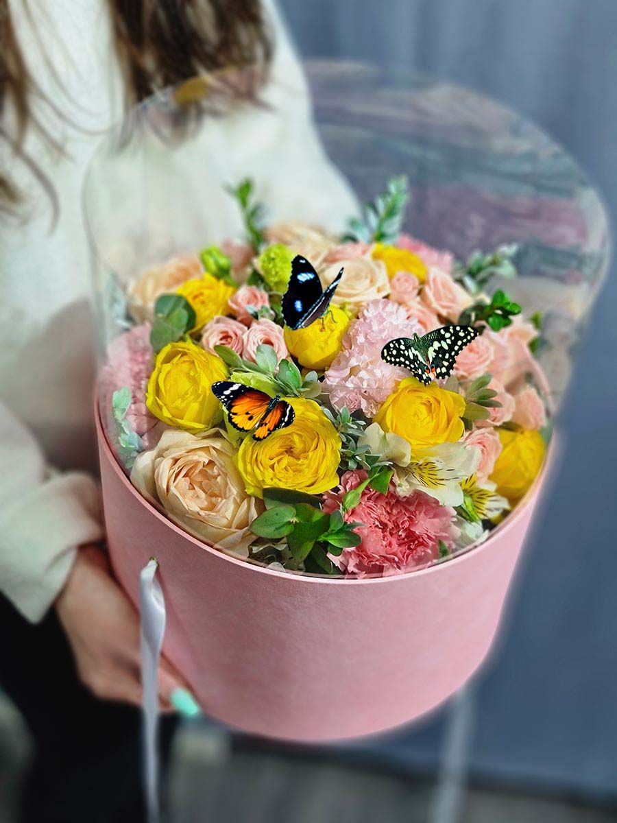 Мы не собираем букеты один в один как на фотографии, но сохраняем: наполнение, стилистику, цветовую гамму, размер выбранного вами букета.