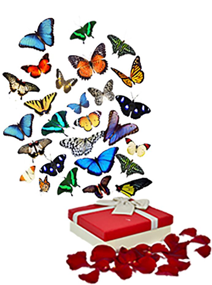 Разноцветный салют из 30 шт. бабочек. Микс из самых разных бабочек.