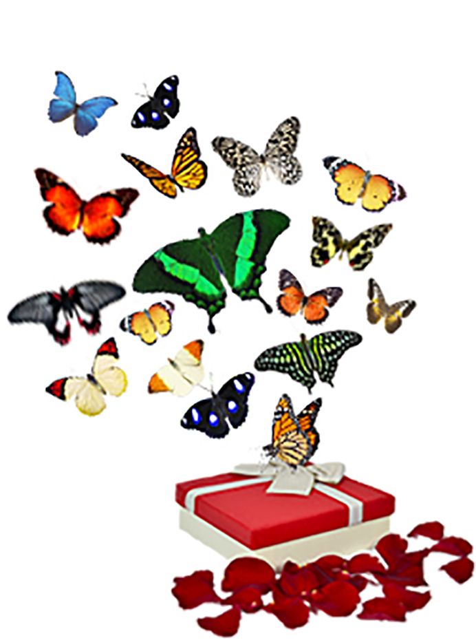 Бабочки 17 шт. в коробке с лепестками роз купить в Магазине бабочек. Ру